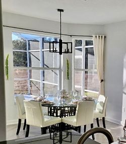 Tommy Bahama dining room table With 5 Crate and Barrel synthetic leather chairs $950Kissimmee, FL