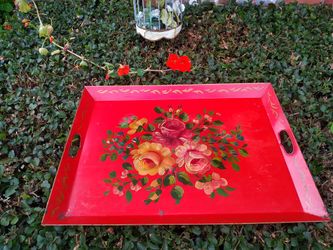 vibrant red vtg serving tray, Tole Ware $23Huntington Beach, CA