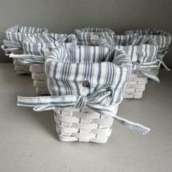 6 Mini Baskets with Liners White Wicker Blue White Stripe Fabric Lining Small Storage$15Tualatin, OR