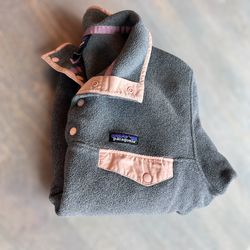Patagonia Womens Fleece Pullover sz S Small Gray Peach Synchilla Snap-T Sweater$45Tualatin, OR