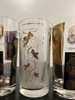 Mid 20th Century Vintage Cera Gold and Black Coin Highball Glasses $60Riverdale, GA