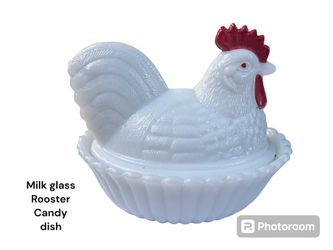 Milk glass Candy Dish Rooster 10$ $10El Cajon, CA