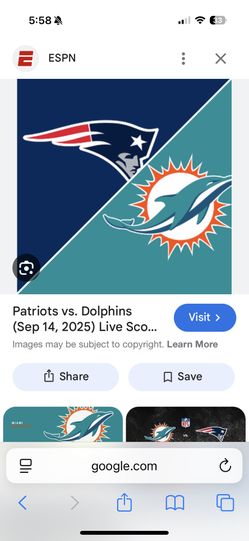 2 Dolphins Vs. Patriots Sec 105 3rd Row Tickets$500Laud Lakes, FL