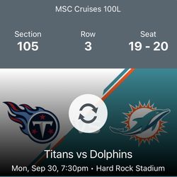 Dolphins vs. Titans 4 Tickets$200Laud Lakes, FL