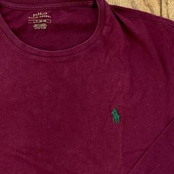 🙏 Maroon Green PONY Men’s LARGE Ralph Lauren POLO Long Sleeve Crew Dress Work T Tshirt T-Shirt L$17Arlington, TX