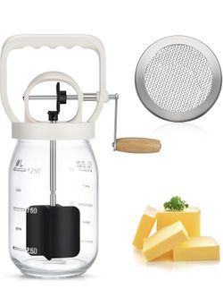 New-CAROD Classical Butter Churner, 1.5L Glass Jar with Hand Injury Prevention Device & Sifting Lid, 50oz Hand Crank Jar Maker Creates Fresh Homemade $25Queens, NY