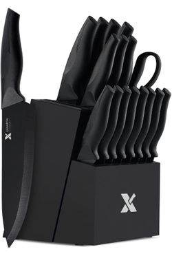 New-19-Piece Black Kitchen Knife Set with Block and Built-in Sharpener, High Carbon Stainless Steel Chef Knives Set for Kitchen with 8 Steak Knives, E$25Queens, NY