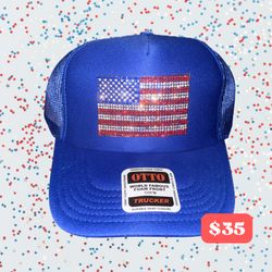 USA Bling Flag Trucker Hat โ Red, White & Blue Rhinestones - 4th Of July $35Carlsbad, CA