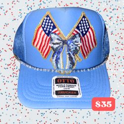Patriotic Flag & Rhinestone Bow Trucker Hat โ 4th Of July $35Carlsbad, CA