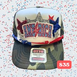 ๐บ๐ธ Camo โAmericaโ Sequin Trucker Hat โ White Foam Front- 4th Of July $35Carlsbad, CA