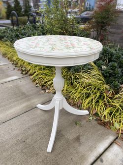 Solid Mahogany Round Accent table with Scalloped Edges & Hand painted floral accent$125Hillsboro, OR