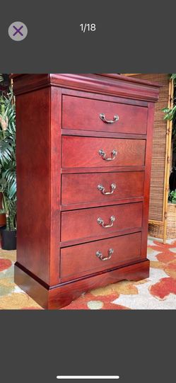 Mahogany Burgundy 5-drawer Tallboy Dresser , Solid wood - 48H x 32W x 18D $400Portland, OR
