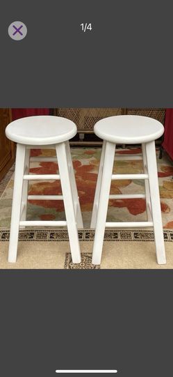 2 White Round Barstools, Solid wood - 24"H x 12" seat $130Portland, OR