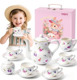 Tea Party Set for Little Girls Ages 3-8, White Floral Porcelain Tea Set with Gold Trim Edges, Princess Tea Time Toy Includes Pot & Cups & Sauce$30Garland, TX