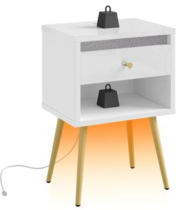 Modern Nightstand with USB Charging Ports, Drawer and Open Storage, Bedroom Living Room Decor, High Gloss White$40Garland, TX