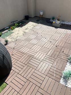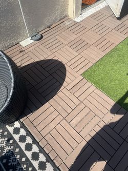 Outdoor Deck With Plastic Wood Panel Tiles, Fake Grass Turd And Rocks $550Los Angeles, CA