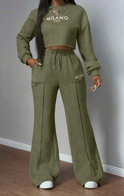 Casual Outfit Set: Loose-Fit, Long-Sleeve Crewneck Sweater + Wide-Leg Straight-Fit Pants/ Size M / $15$15Port St. Lucie, FL