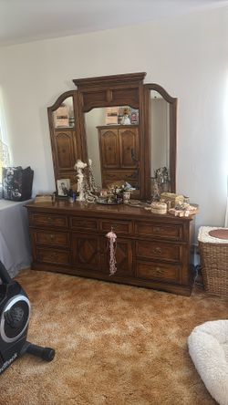 Vintage Solid Wood Dresser with Triple Mirror – 9 Drawer$200Torrance, CA