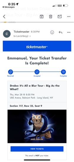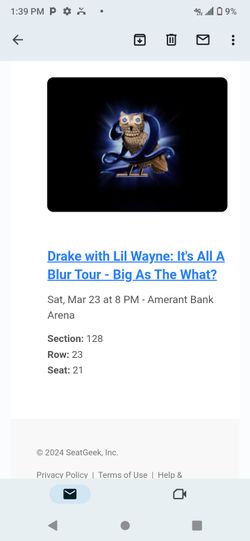 Drake It All A blur tour UBS Arena Section 117 Row 25$500Queens, NY