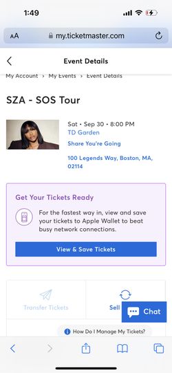 Sza SOS Tour Floor Tickets Floor B row 14$500Boston, MA