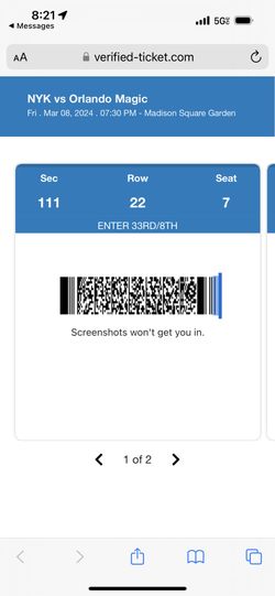 Knicks Vs Orlando Magic Section 111 Row 22 $320New York, NY
