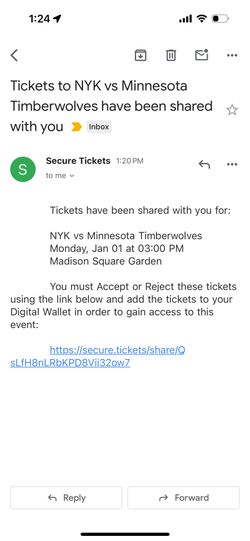 Knicks Vs Timberwolves 1/1 2024 Section 112 Row 22$500New York, NY