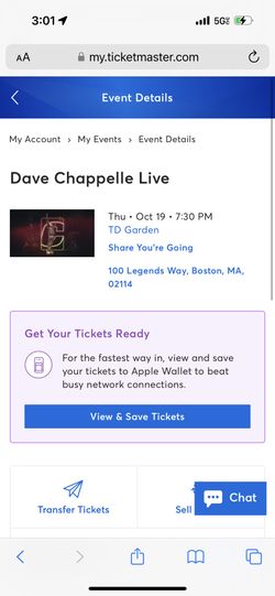 Dave Chapelle Live Tickets Lodge 12 Row 9$350Boston, MA