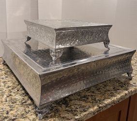 Nickel Plated Square Embossed aluminum Cake Stand ( set of 2 )$75North Smithfield, RI
