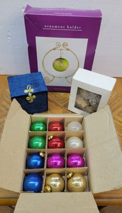 Vintage Mercury Glass Christmas Ornaments, Ornament Holder, Li Bien Snowman Ornament, & Garden Ridge Resin Figurines