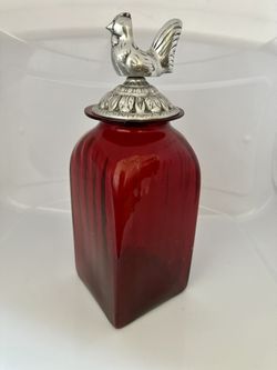 Vintage Red Glass Amber Canister With Rooster pewter lid. Made in Mexico$50Avon, IN
