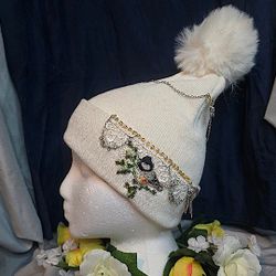 Chic White Pom-Pom Beanie with Lace Detail$40Doubs, MD