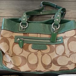 Coach Bag Tan /green Trim .great Handbag .Clean .$30West Islip, NY