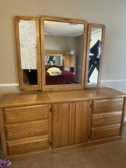 Oak Dresser, Nine Drawers, Long High-Quality With Vanity Mirror$125Mesa, AZ