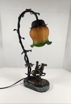 FREDERIC REMINGTON REPRODUCTION STATUE COWBOY GLASS TULIP TABLE LAMP $125Plano, TX