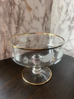 Vintage Etched Glass Pedestal Bowl with Gold Rim$5Miramar, FL