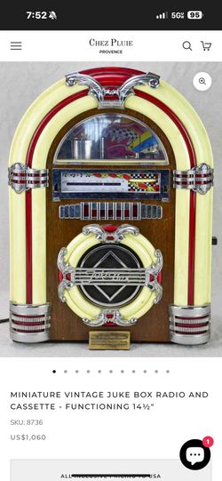 MINIATURE VINTAGE JUKE BOX RADIO AND CASSETTE - FUNCTIONING 14½" SKU$50Laguna Beach, CA