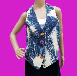 Vintage 80s Marcia's Rainbow Acid Wash Denim Colorful Button-Up Vest $35Los Angeles, CA