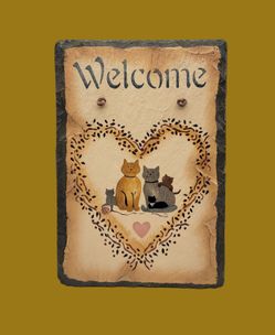 Like NEW Vtg Slate Heart Kitty Cats Welcome Door Sign Wall Plaque Decor $25Los Angeles, CA
