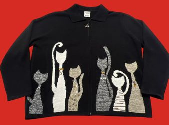 Vtg Allison Daley Size M Black Cat Silhouettes Beaded Full Zip Cardigan Sweater $30Los Angeles, CA
