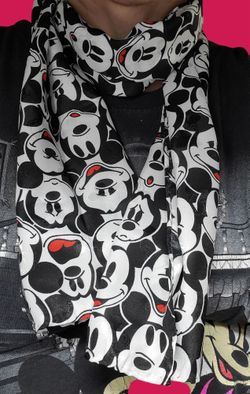 NWOT Disney Honey Fashions LTD NY Mickey & Co 54" Black/White Faces Scarf $25Los Angeles, CA