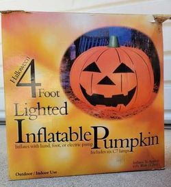 Like NEW Vtg Halloween. Lighted 4 Ft Inflatable Pumpkin in Original Box For Outdoor Or Indoor Use $15Los Angeles, CA