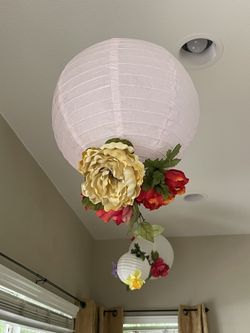 19 White And Pink Paper Chinese Lanterns Decorated With Silk Flowers$50Temecula, CA