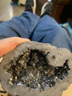 This is a geode with a cluster of pyrite crystals inside. $60Lucas, TX