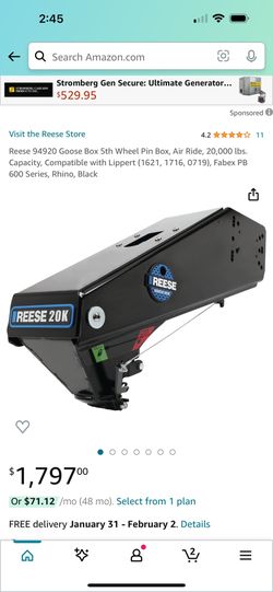 Reese 94920 Goose Box 5th Wheel Pin Box, Air Ride, 20,000 lbs. Capacity$1,500Palmdale, CA