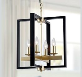 Industrial Lantern Chandelier, 4-Light Modern Geometric Semi Flush Mount Ceiling Light Fixture, Black & Champagne Gold$45Garland, TX