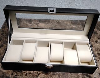 Watch Case $12 - New - Black Leather Box, Glass Window Lid, 6 Slots$12La Mirada, CA