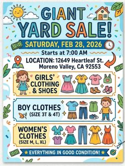 Yard Sake Tomorrow $1Moreno Valley, CA