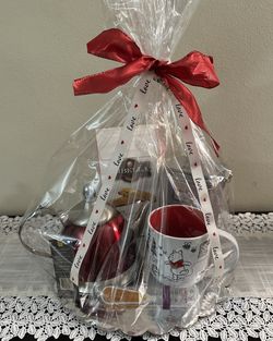 Valentines Gift Basket. Red With White Heart Ceramic Tea Kettle And Two Mugs.$45Whittier, CA