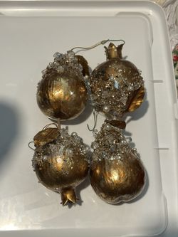 Pear And Pomegranate Golden Christmas Ornaments$10San Diego, CA