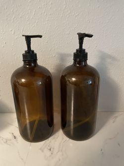 2 Amber Glass Bottles w/ Pump Dispensers - Kitchen-Bath-soap-lotion$20Tampa, FL
